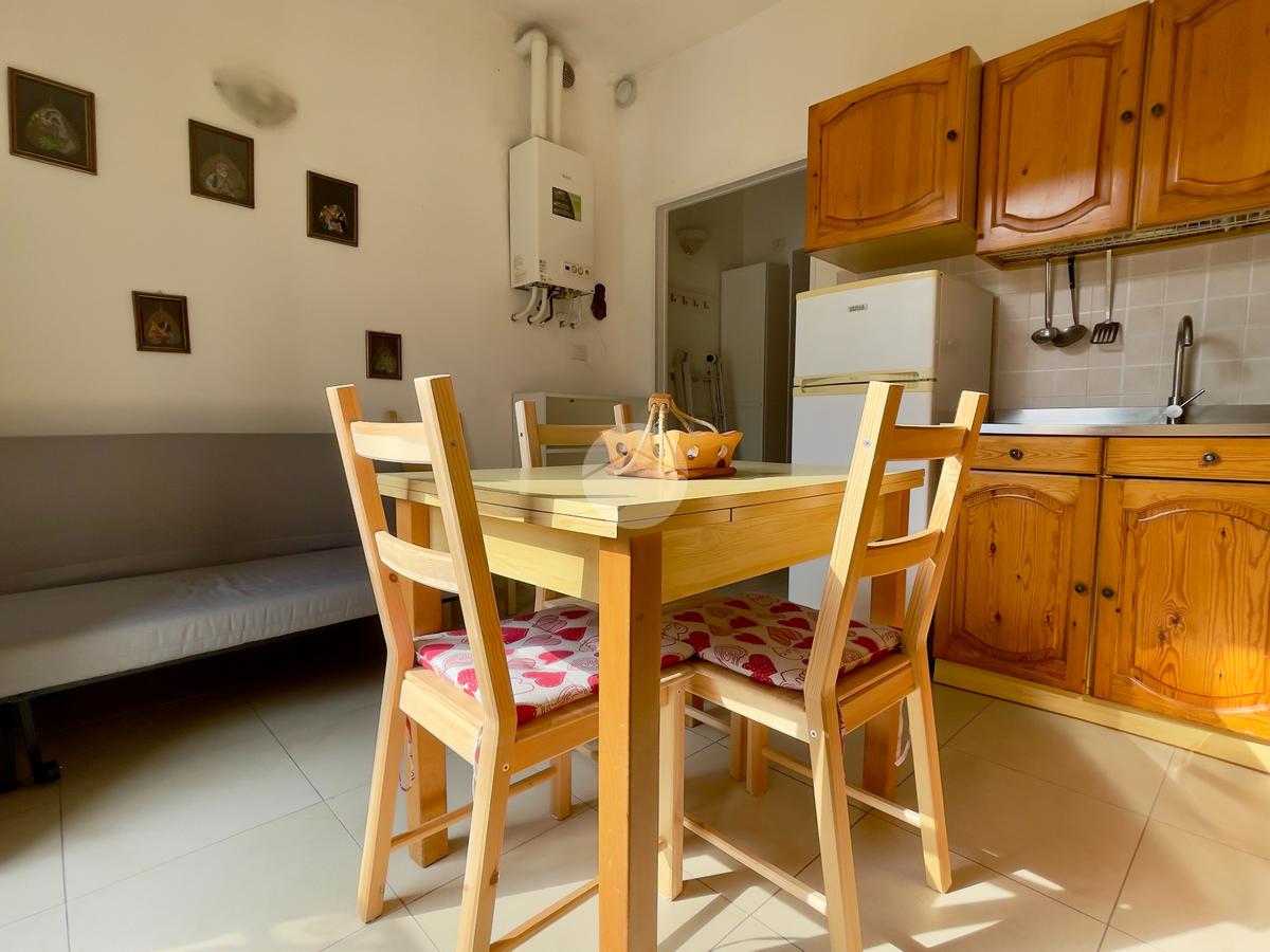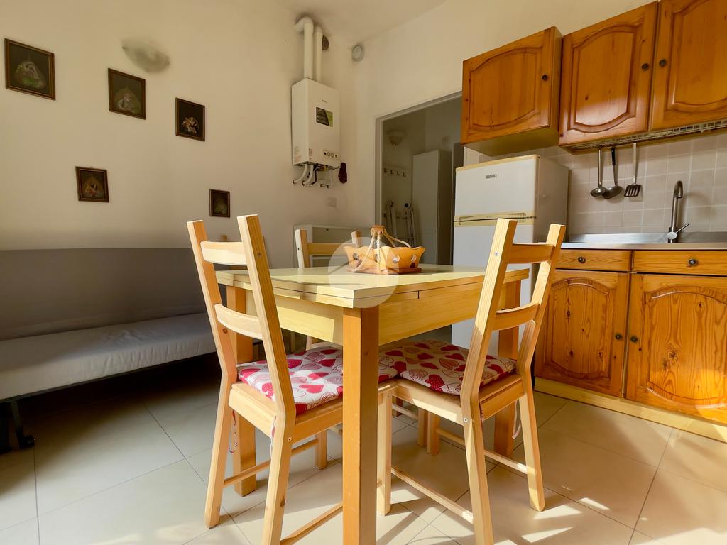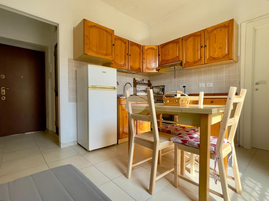 L’immobile è composto dalla zona giorno da un divano letto e angola cottura, prosegue con la zona notte composta da letto matrimoniale ed infine il bagno con doccia e lavatrice. Sia la zona giorno, che la zona notte sono esposte a sud, ed entrambi i locali hanno la porta finestra che porta luce negli ambienti.
