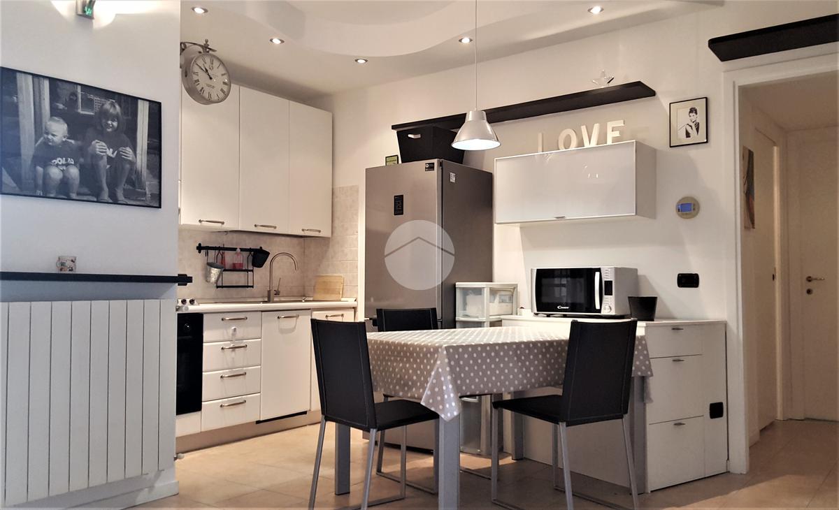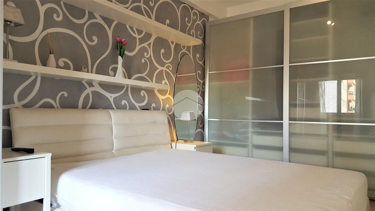 L'appartamento è composto da: soggiorno con divano tavolo mobile tv cucina con elettrodomestici compresi forno, forno a microonde e lavastoviglie, camera matrimoniale con due armadi, bagno con finestra box doccia in cristallo e lavatrice, oltre a due balconi di cui uno loggiato.