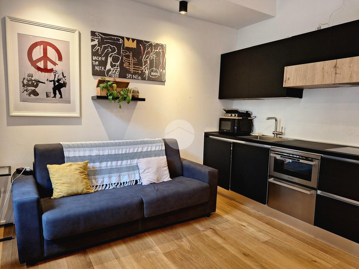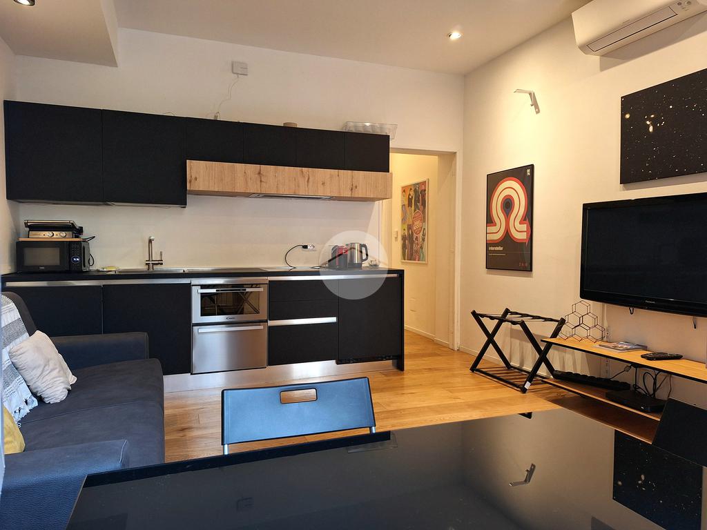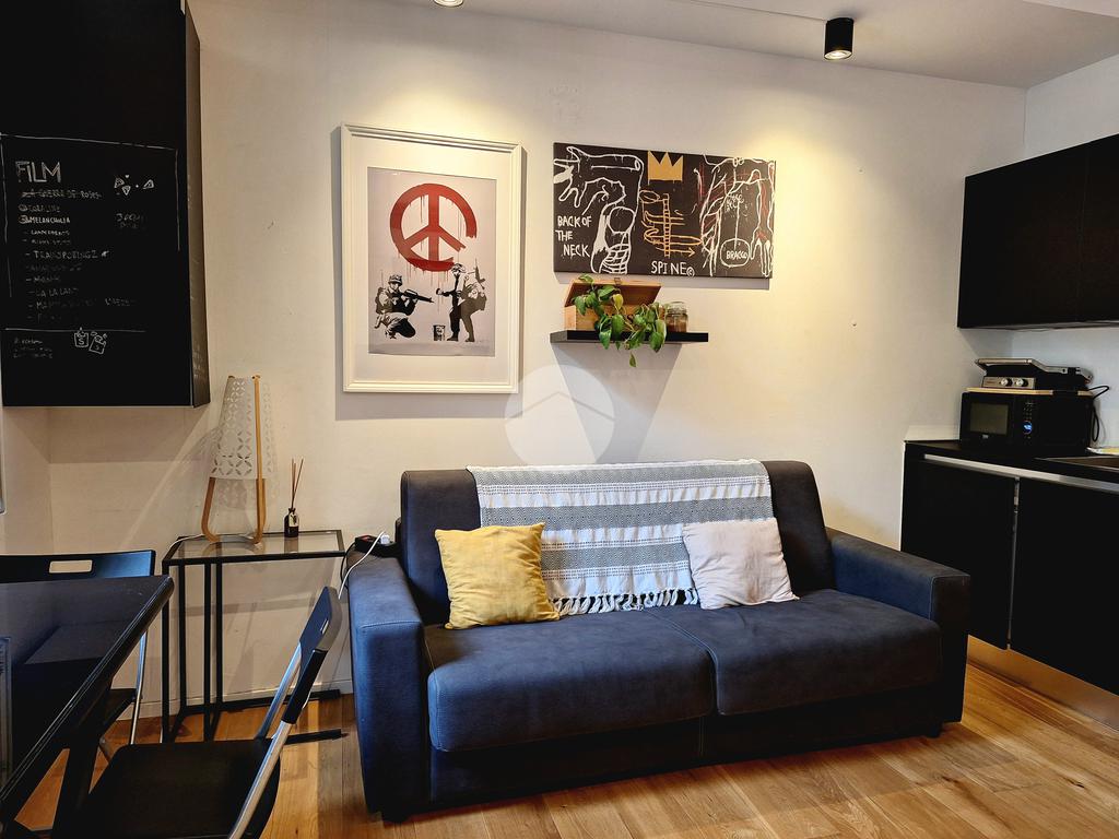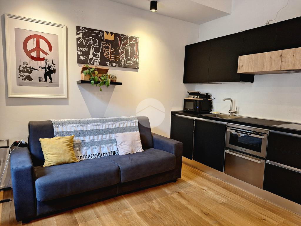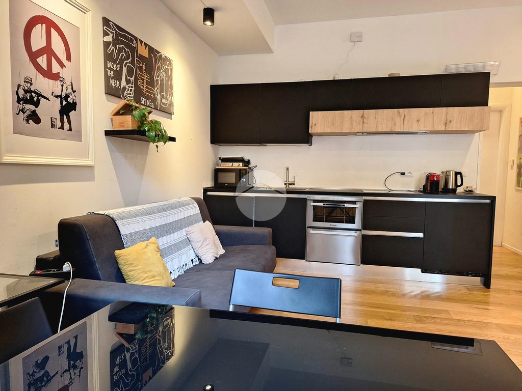 Questo bilocale di 45 mq è stato completamente ristrutturato poco più di cinque anni fa e viene offerto arredato. L'appartamento è composto da una camera da letto con angolo studio, un bagno e una zona gionro con cuicna completa di elettdomestici e divano letto, ideale per diverse esigenze.