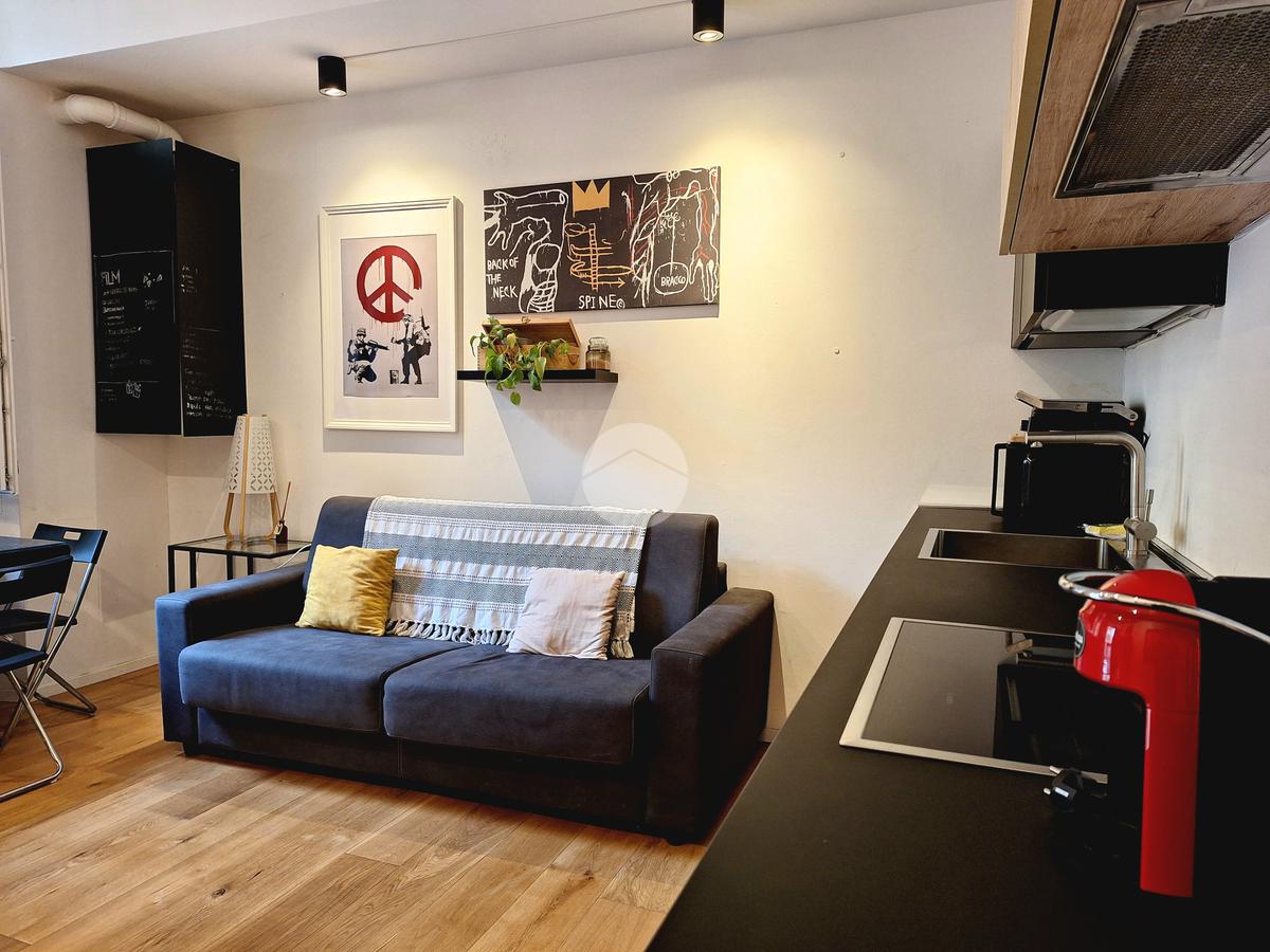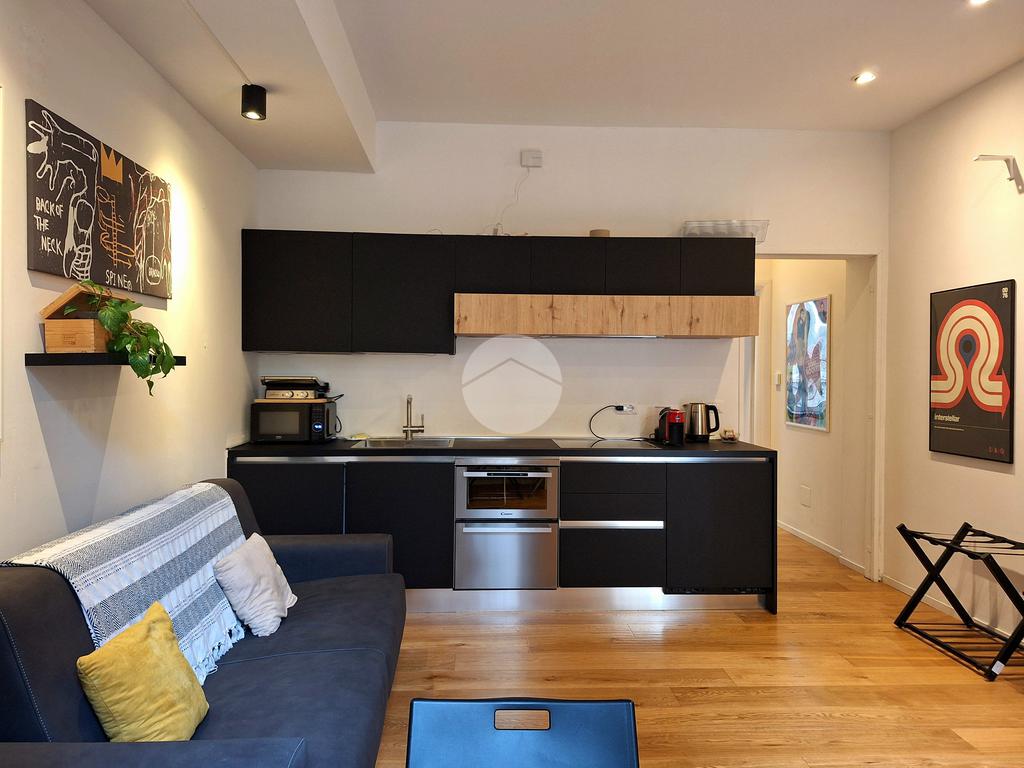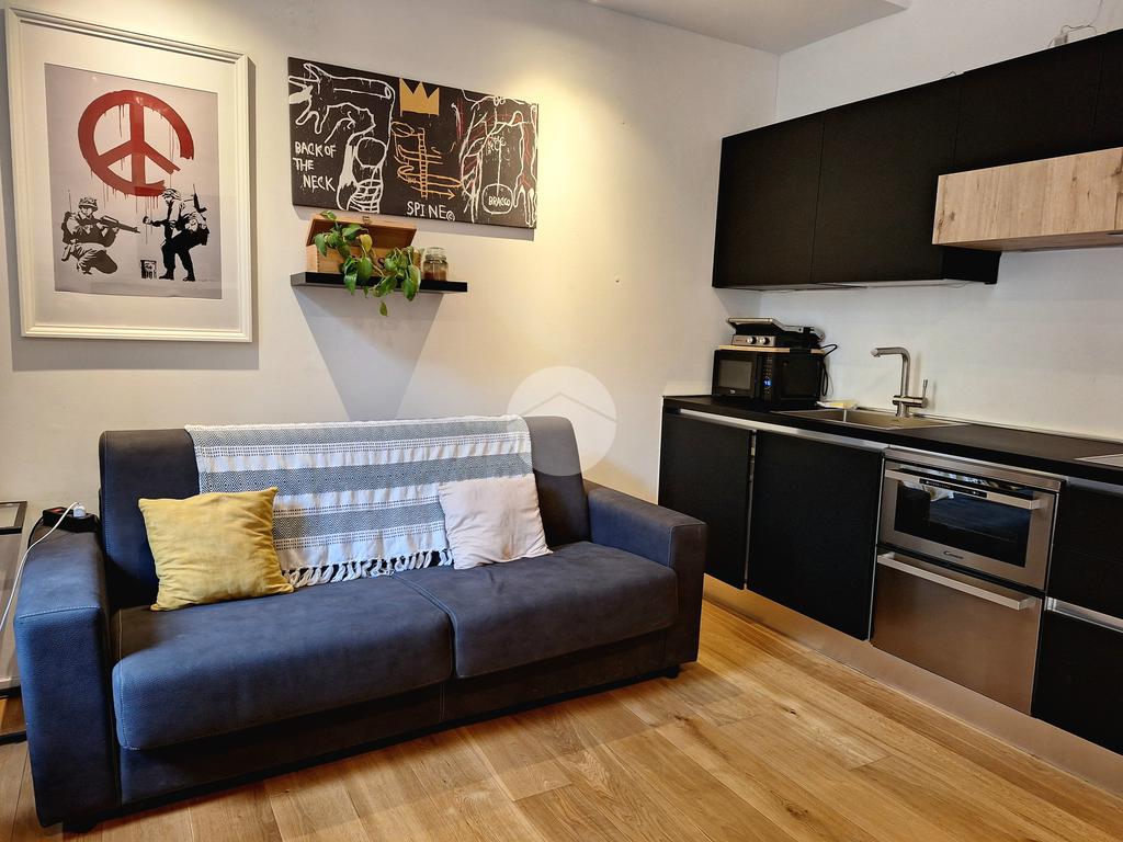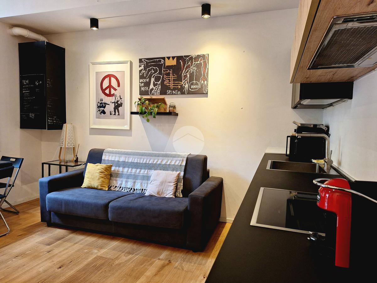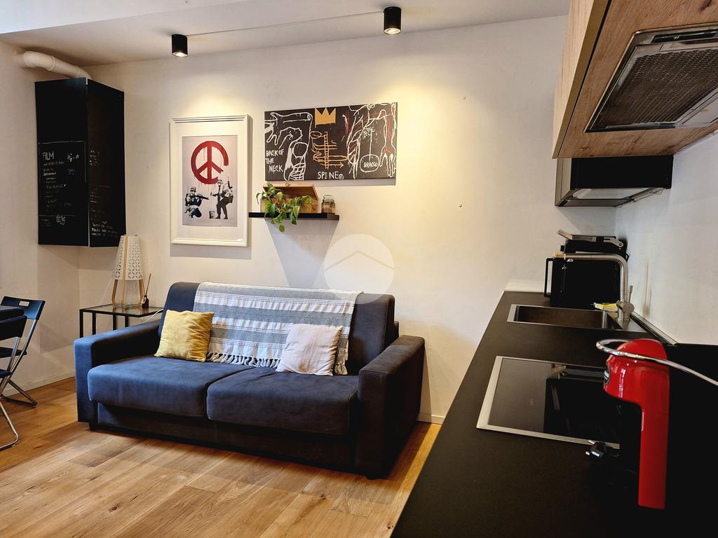 Questo bilocale di 45 mq è stato completamente ristrutturato poco più di cinque anni fa e viene offerto arredato. L'appartamento è composto da una camera da letto con angolo studio, un bagno e una zona gionro con cuicna completa di elettdomestici e divano letto, ideale per diverse esigenze.