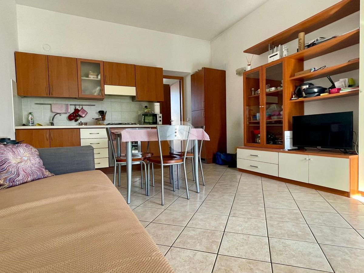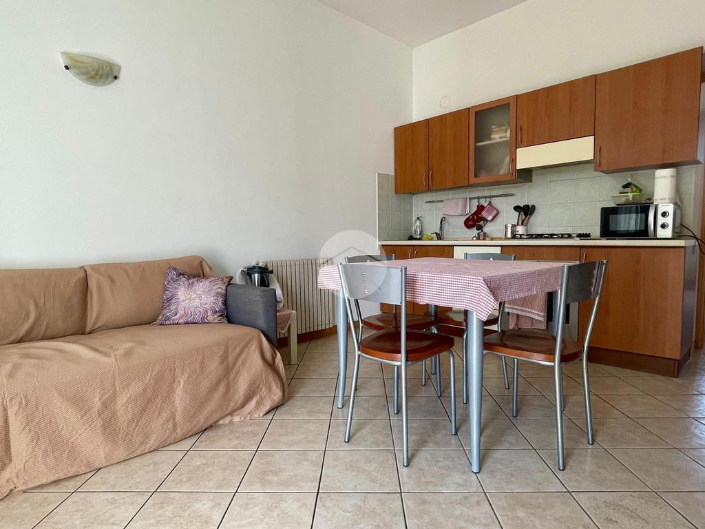 L' appartamento è composto da soggiorno con angolo cottura. La camera da letto matrimoniale, ha il balcone alla francese, con vista sulle montagne,completa la proprietà un bagno con doccia. L'appartamento è dotato di riscaldamento e condizionamento autonomo.
