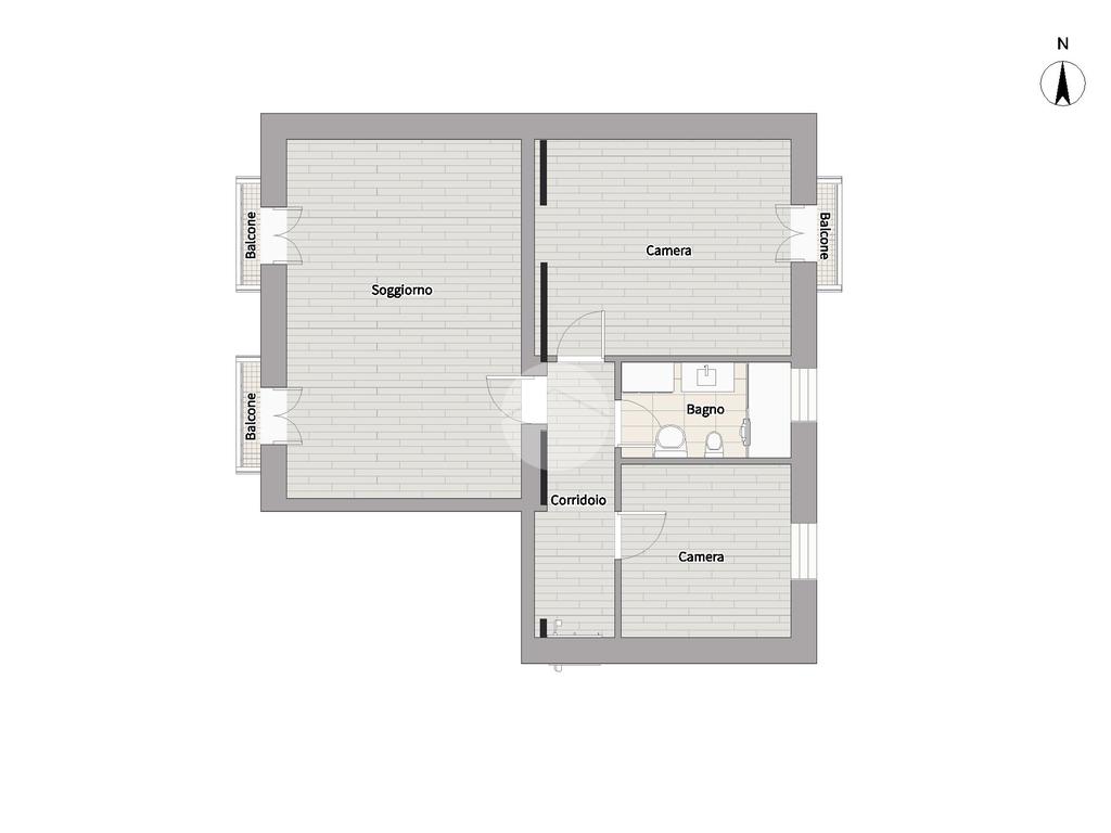 Gli altri ambienti della casa con un altro balcone e il bagno con la finestra affacciano sul cortile interno.