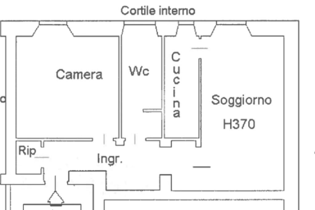 Posto in uno stabile d’epoca con servizio di portineria alla mattina, l’appartamento affaccia sul cortile interno del palazzo.