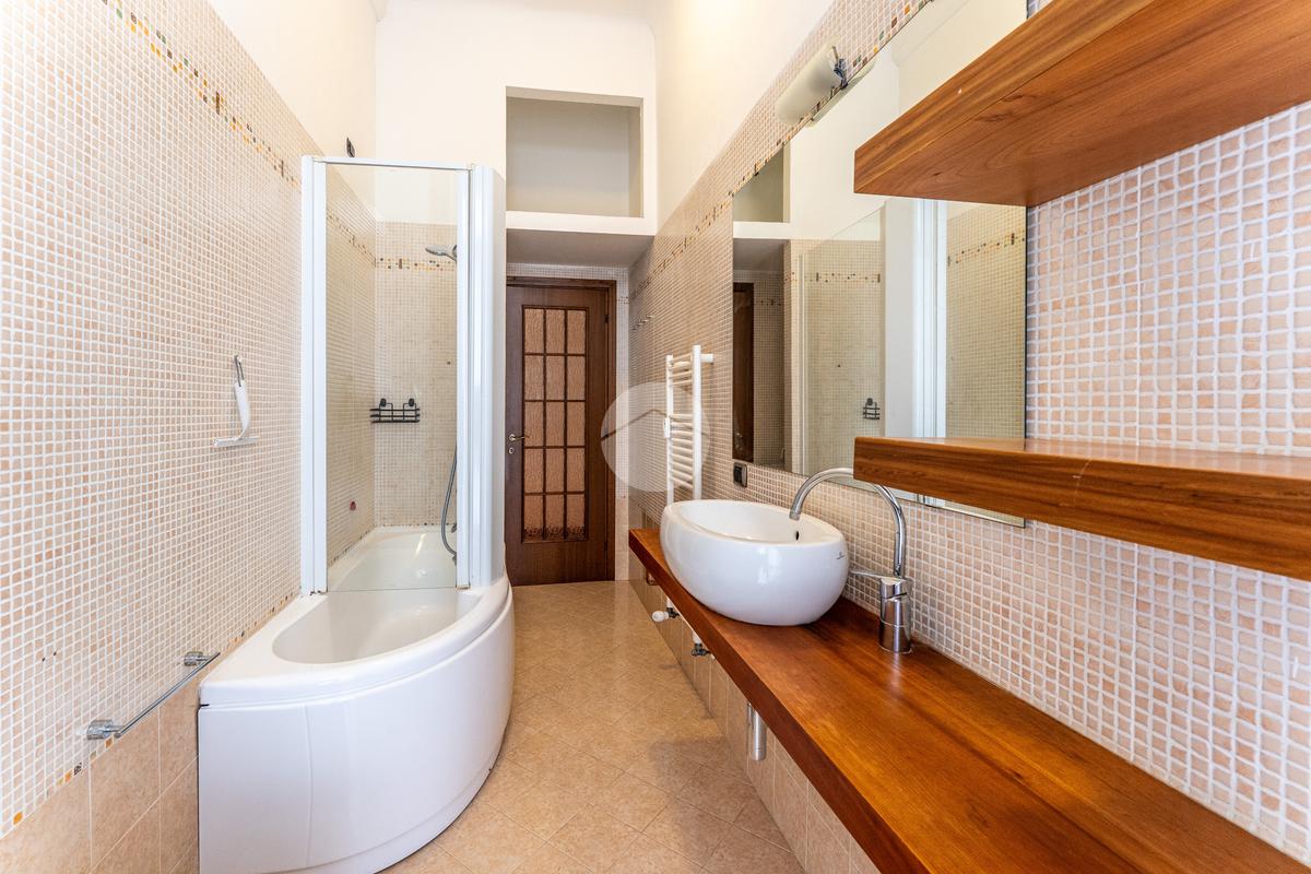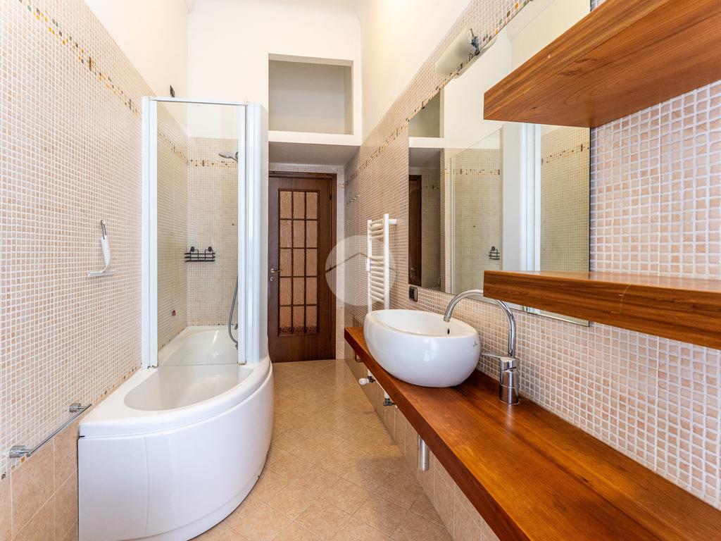 In tutta la casa la pavimentazione è in parquet ad eccezione della ceramica presente nel bagno anch’esso dotato tra l’altro di finestra a piena altezza e gli infissi sono appena stati sostituiti.