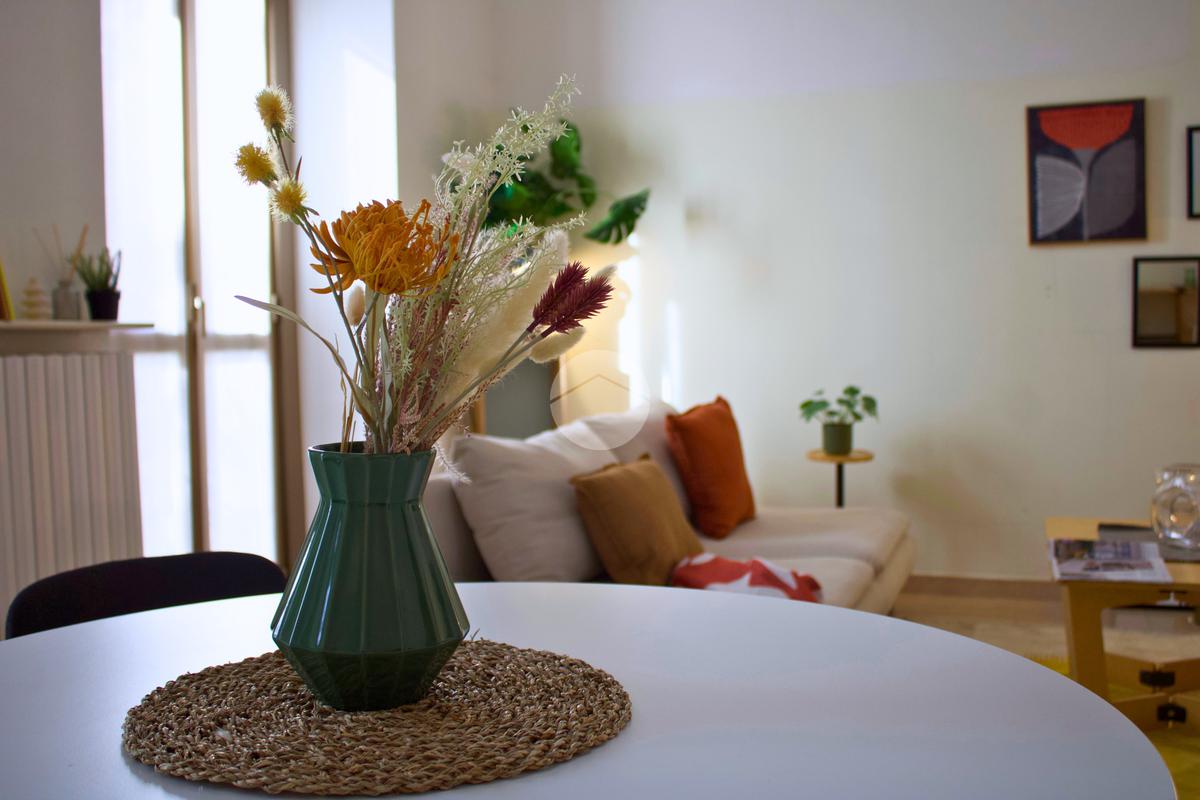 L'immobile, di 90 mq, offre un ampio soggiorno di circa 30 mq, arricchito da due balconi alla francese che garantiscono la vista verso lo Scalo Farini e il Monumentale.